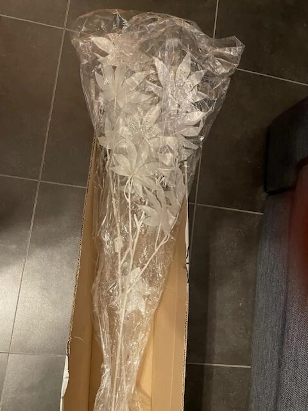 j ai commandé des tiges d erable grises , j en ai recu des blanches avec des feuilles dispersées dans le plastique. ne souhaitant pas les garder je l ai signalé a plusieurs reprises mais aucune reponse a ma reclamation . elles sont donc toujours en ma possession mais d aucune utilité. ci joint photo de ce que j ai recu