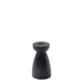 Black wood candlestick Elya 12 cm. With its rounded and minimalist silhouette, the Elya candlestick charms with its understated and contemporary elegance. It can be placed on a table or on a piece of furniture for a soft and warm atmosphere. Designed to hold a standard stick candle, it can be displayed alone or in a trio for a more structured effect with its two other available sizes.