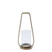 Lantern in brass-colored iron and glass – 20 x 16 x 45 cm. With its slender and fine metal structure, this lantern captivates with its timeless elegance and minimalist design. Its brass finish gives it a warm touch, ideal for creating a soft and subdued atmosphere. Its removable inner glass cylinder delicately reflects the glow of the candle. Perfect on a table, on a piece of furniture, or on the floor in a sheltered outdoor area, it can hold a small cylindrical candle to enhance your evenings. To be displayed alone or paired with its smaller size for harmonious decoration.