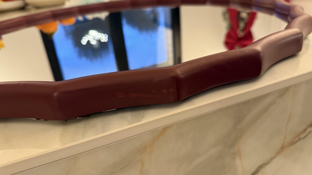 Round mirror with a wavy semi-matt wooden frame 76x76 cm. Bring a modern touch to your spaces with this wavy round wooden mirror, measuring 76x76 cm. Its unique frame features a wavy outline and a semi-matt finish, giving it a natural and playful style, perfect for adding character to any type of interior decor. This mirror is ideal for visually enlarging a room. Place it in an entryway, living room, or bedroom to create a welcoming atmosphere. With its quality wooden design, this mirror combines sturdiness and contemporary design to enhance your interior.
