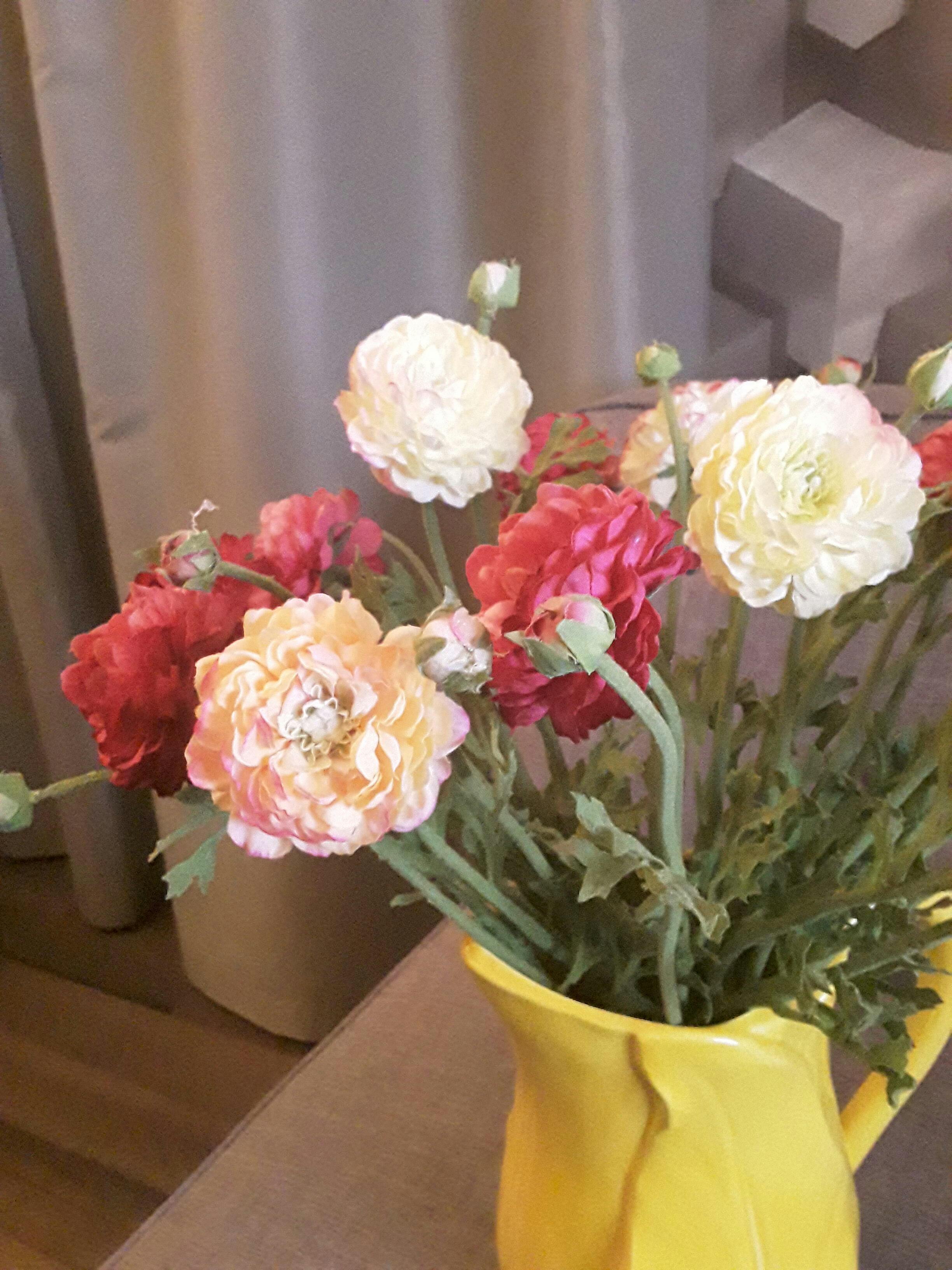 Renoncules de qualité, à l'aspect fort réaliste et dont les tiges ne "jurent" pas avec les fleurs.