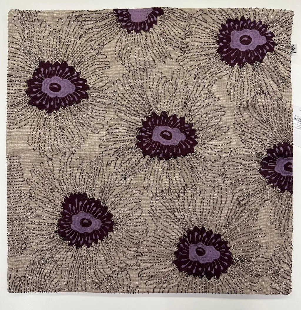 Discover this beautiful square beige and purple cushion cover embroidered with flowers. It will bring a rustic and elegant style to your living room or bedroom.