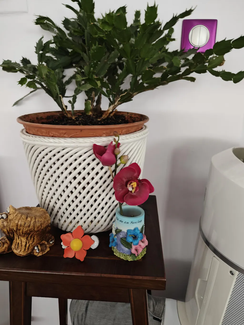 Petite (ne fait que 21 cm) orchidée très réaliste, coloris sublime ; ravie comme d'habitude.