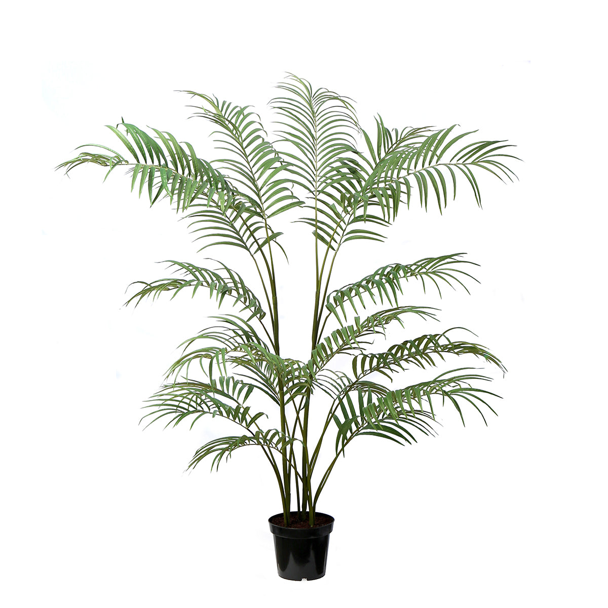 Transforma tu hogar en un verdadero oasis con esta palmera areca artificial de 180 cm de altura. Presentada en una maceta negra, cautiva con su generoso volumen y sus largas hojas de color verde tropical, de un realismo sorprendente. Su gran tamaño permite colocarla directamente en el suelo para decorar una amplia sala de estar, dormitorio u oficina, creando un ambiente exótico y relajante. Sus ramas flexibles se pueden ajustar en todas direcciones para un efecto aún más voluminoso y natural. Esta palmera areca encarna a la perfección la frescura y la tranquilidad, ideal para una decoración de inspiración tropical.