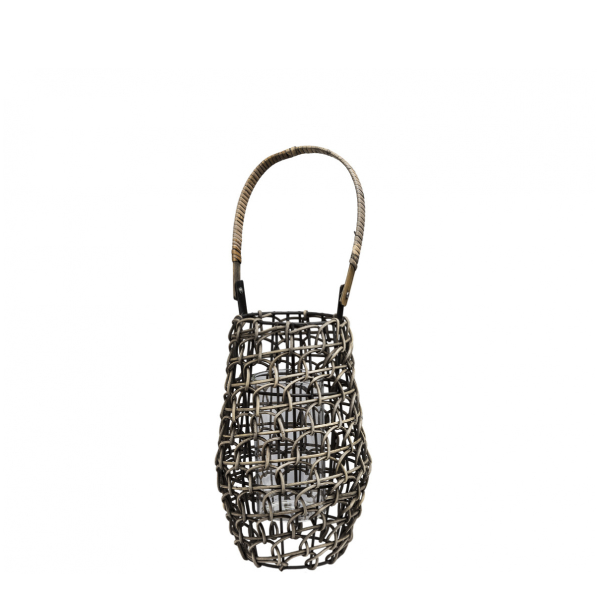 Gran linterna de ratán con mango redondeado. Está hecha para sostener una gran vela redonda en su interior gracias a su protección de cristal. Perfecta para crear un interior acogedor y natural o para integrarse perfectamente en su jardín gracias a su aspecto tan natural.