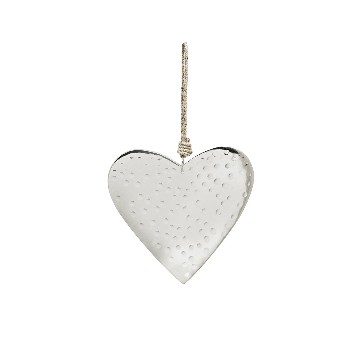Corazón de plata en aluminio muy ligero para colgar en el árbol con dibujo en relieve con pequeños puntos martillados. Vendido Individualmente.
