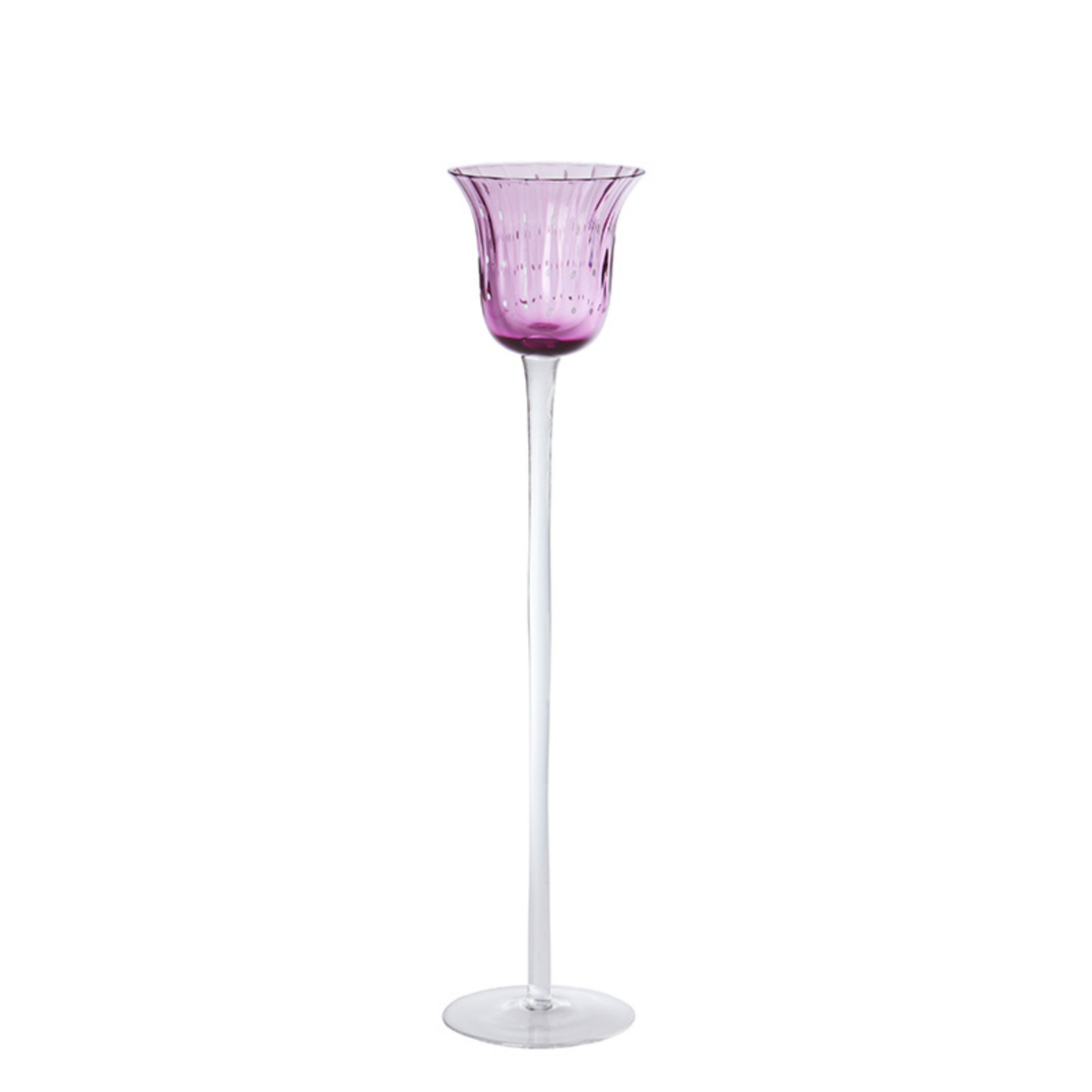 Portavelas de vidrio transparente con una base de alta calidad . Su collar de color es delicadamente ondulado y está decorado con pequeños puntos blancos. Este portavelas iluminará tus habitaciones con calidez y suavidad. Este accesorio para velas pequeñas es perfecto para una decoración navideña moderna y elegante. Colócalo sobre una mesa o una cómoda y varía la altura para lograr una luz tenue, acogedora y festiva. Disponible en varios tamaños.