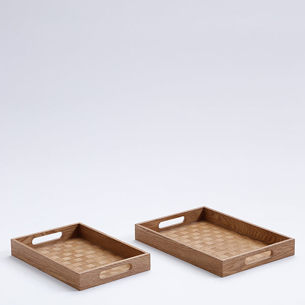 Set de 2 plateaux décoratifs rectangulaire, en bois marron avec surface . Composé d’un petit et d’un grand format, ce duo aux teintes marron naturel est idéal pour le service du thé, le transport de repas ou la mise en scène d’objets décoratifs. Munis de poignées intégrées, ces plateaux allient praticité et esthétique. L’aspect de la surface de ces plateaux est tressé en damier. Le motif est discret mais visible, apportant une touche artisanale et naturelle à l’ensemble. Le bois, dans une teinte marron clair naturel, renforce le côté chaleureux et authentique de ces plateaux. Leur design classique s’intègre harmonieusement dans une décoration sobre et élégante. Parfaits pour sublimer une table, accueillir un vase, des bougies ou des photophores.