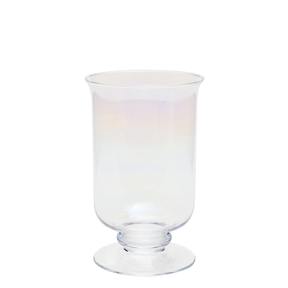 Photophore à pied en verre transparent. Ce calice peut aussi être utilisé en vase. Il se fondra parfaitement dans une décoration chic.