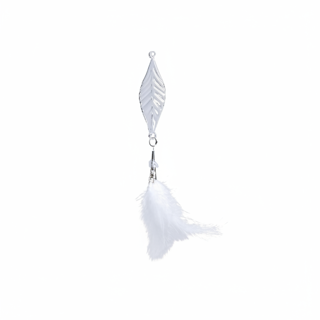 Suspension en forme de feuille avec plumes au bout pour arbre de Noël.