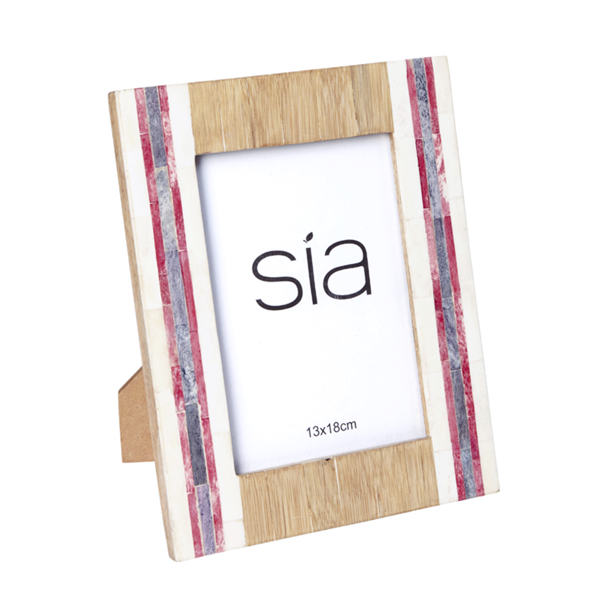 Cornice per foto BOSTON 13x18cm in legno di mango. Immortala i tuoi ricordi più belli in questa cornice con due bordi decorati con linee nere e rosse che faranno risaltare le tue foto più belle. Questa graziosa cornice per foto effetto legno sarà perfetta per dare un tocco naturale ai tuoi interni.