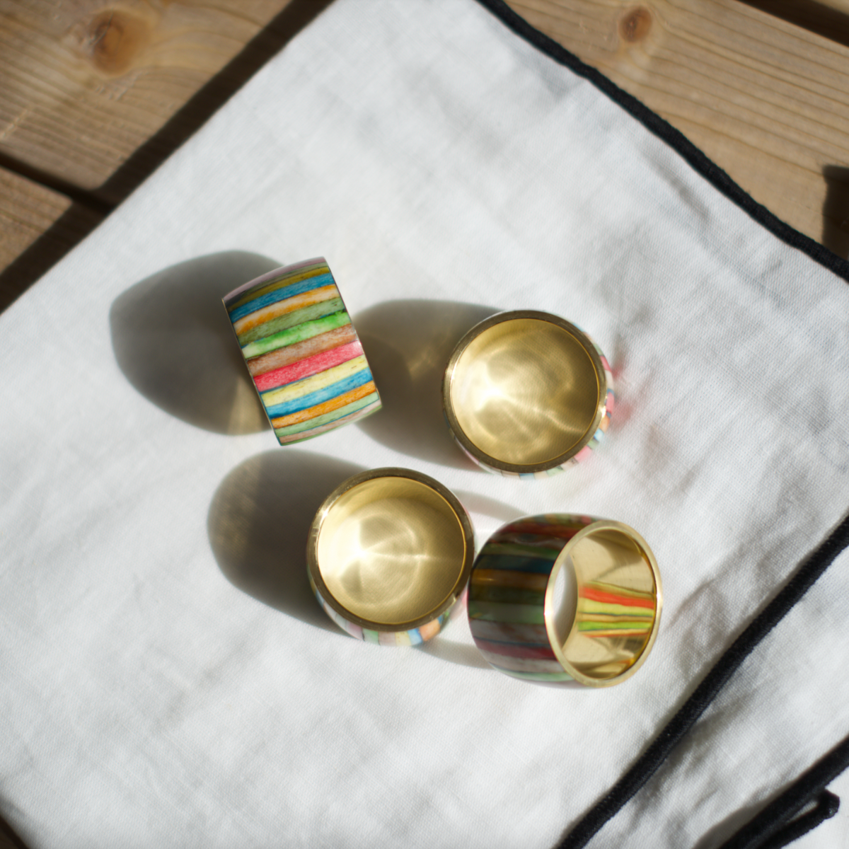 Set di 4 portatovaglioli con inserti colorati e interno dorato per dare un tocco esotico alla vostra tavola.