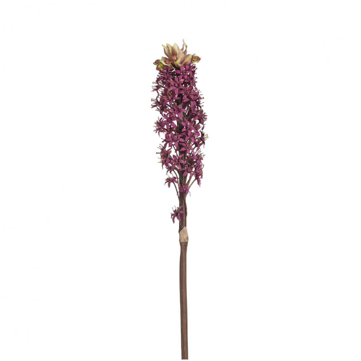 Grande stelo artificiale di giglio ananas. Conosciuta anche con il nome di "Eucomis", questa fantasiosa pianta bulbosa offre una fioritura sorprendente ed esotica che ricorda la forma dell'ananas. Il suo colore morbido e caldo permette di abbellire elegantemente il vaso DUCKY.