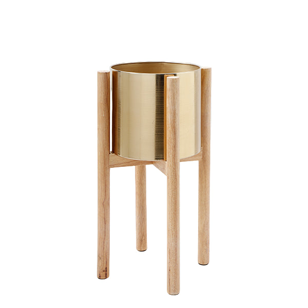 Le cache-pot Amaya, avec sa forme ronde en métal et son piètement en bois clair, met en valeur plantes, fleurs artificielles ou bouquets. Pot collé aux pieds non amovible pour une bonne stabilité. Polyvalent, il s’adapte à tous les styles, du minimaliste au bohème chic. Associez-le au cache-pot sur pieds Mirae et au cache-pot Siven pour une décoration harmonieuse aux accents laiton.